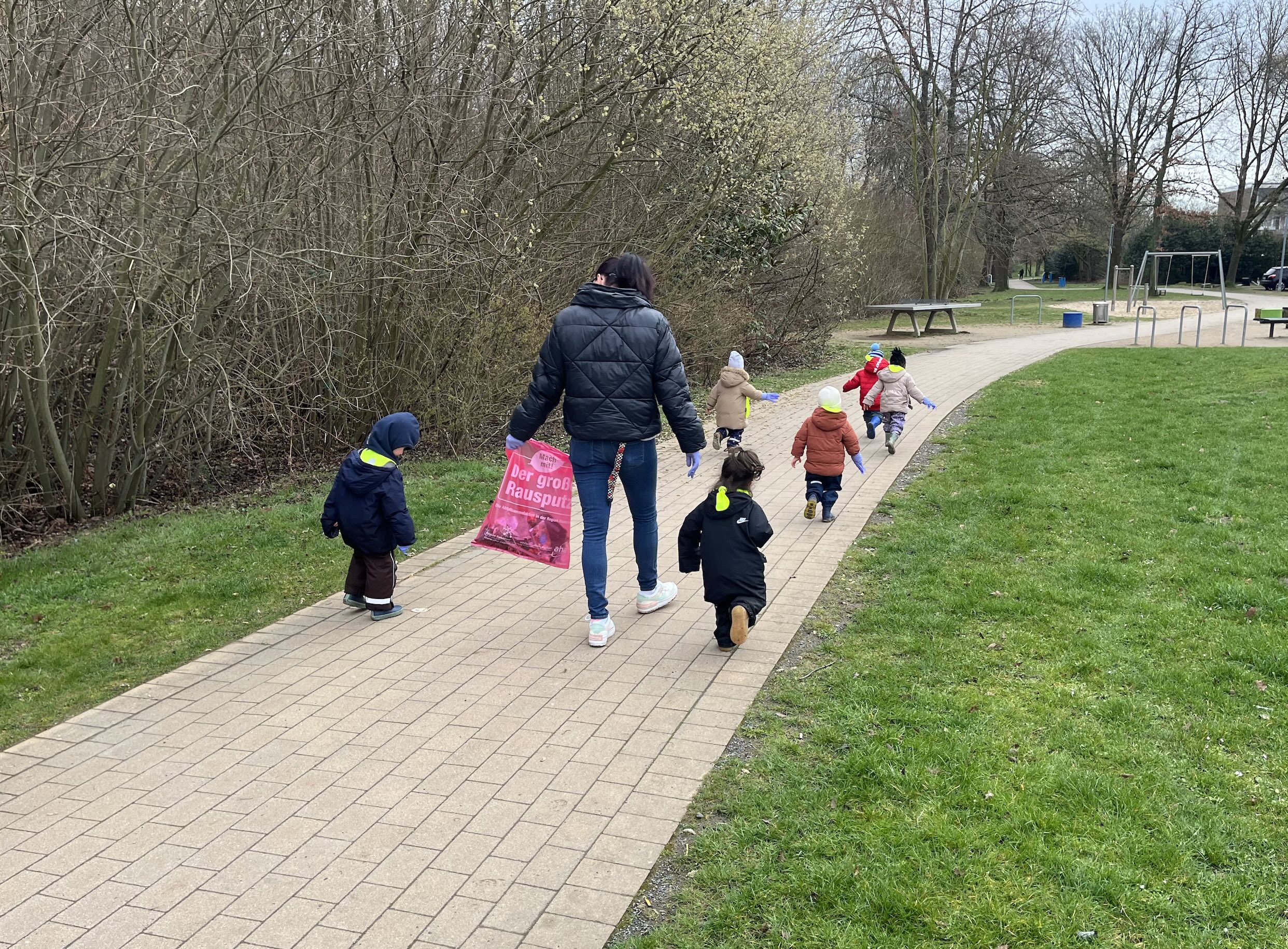 „Die kleinen Strolche“ nehmen als einzige Krippe an der Müllsammelaktion Clean-up der Stadt Garbsen teil. Seit Anfang März sammeln die 15 Kinder im Alter zwischen einem und drei Jahre weggeworfenen Abfall ein. „Wir möchten, dass unsere Umwelt sauber bleibt“, erklärt die Kinderpflegerin Ingrid Popenda, die sich für das Projekt engagiert. „Dabei können die Kinder lernen, dass man seinen Müll nicht achtlos auf den Boden schmeißt, sondern in Mülleimer. Für sie ist das ein Spiel und es macht ihnen sichtlich viel Spaß.“