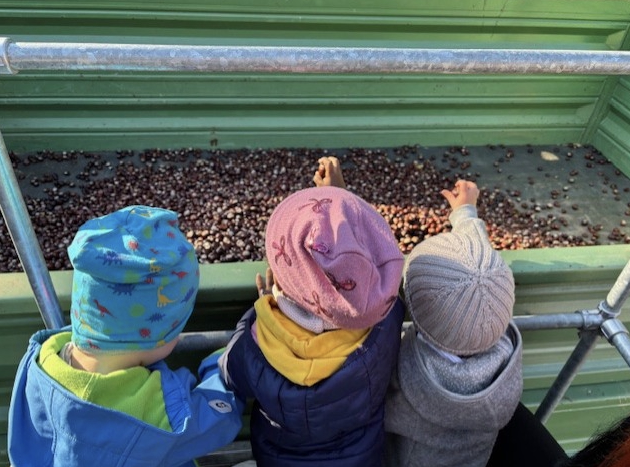 Zudem haben die Krabbler den Tieren ihre bei Ausflügen gesammelten Kastanien als Winterfutter gespendet. "Das Werfen der Kastanien in die Sammelstelle war ein echtes Highlight für die Kinder", sagt die Kitaleiterin. Als Belohnung gab es für alle fleißigen Sammlerinnen und Sammler eine Baumscheibe, die als Eintrittskarte für das Tiergartenfest am 11. Oktober genutzt werden kann.