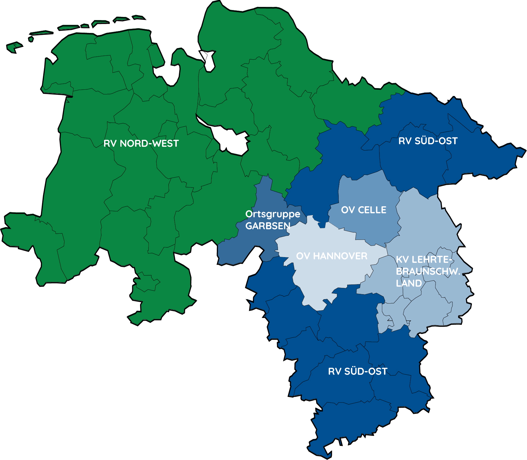 Der HVD Niedersachsen besteht aus Regional-, Kreis- und Ortsverbänden. Zum Teil gibt es in ihnen noch ehrenamtliche Gremien, zum Teil auch ehrenamtliche Teams, die sich um ihre Mitglieder kümmern sowie Ansprechpartner für die Region sind.